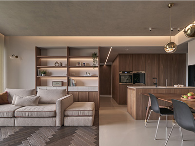 在設計階段中,所有立面及櫃體造型亦使用3D圖面做討論,以呈現材質、配色及空間感。重點區域可相片級3D渲染、模擬光影質感(額外收費項目)。最後繪製施工圖冊及工程細項報價單。