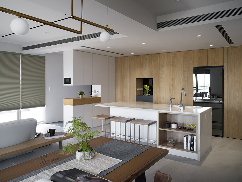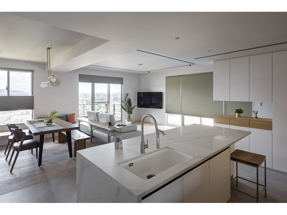 主要建材 | 天然橡木木皮、鐵件、印度黑石材、海島型木地板