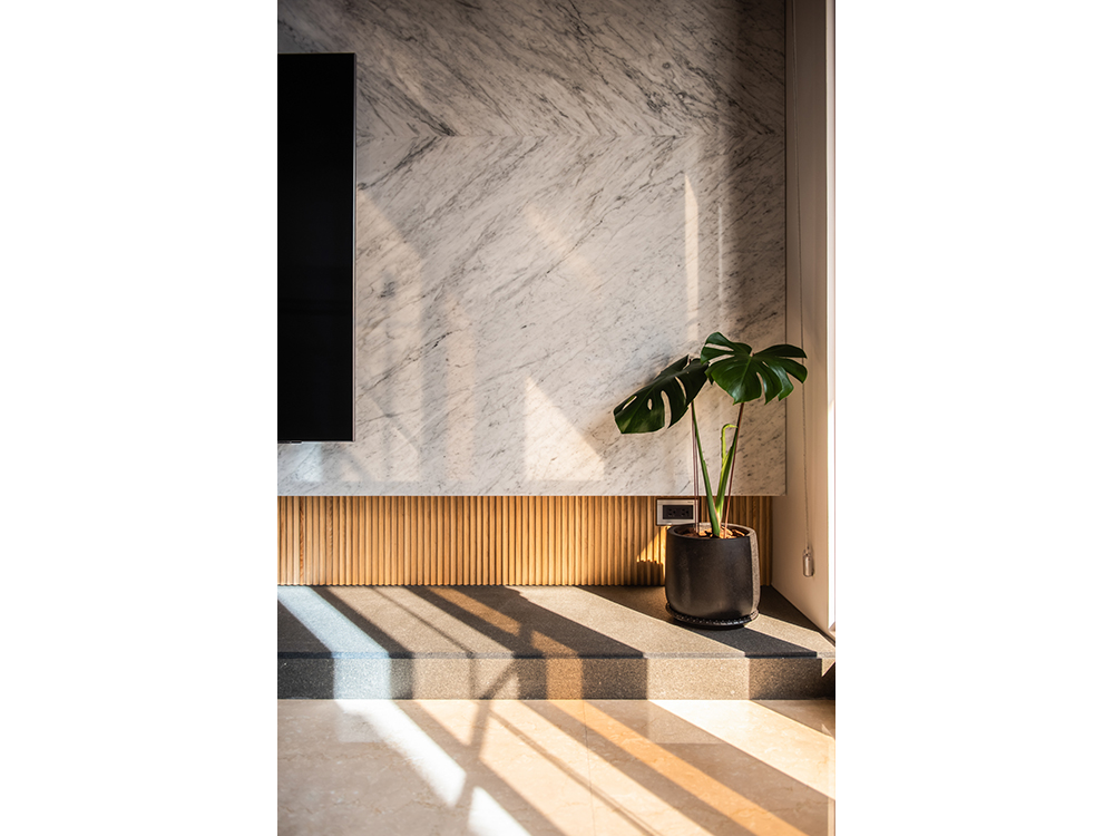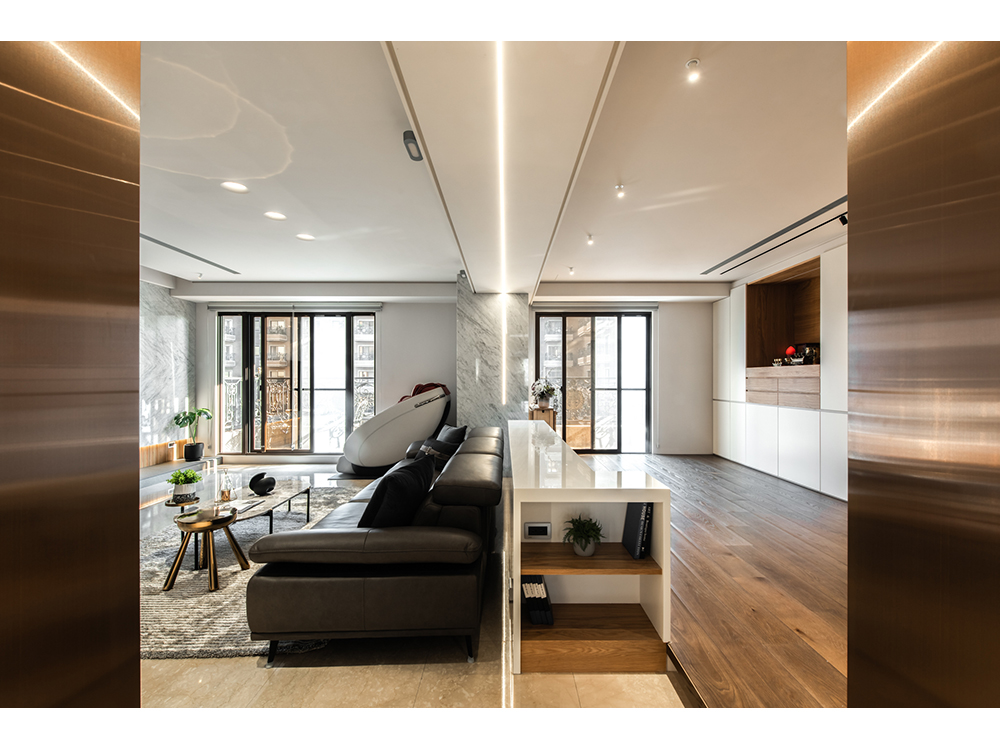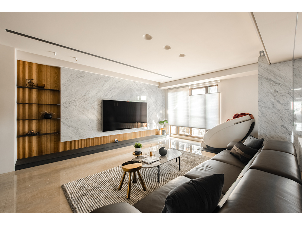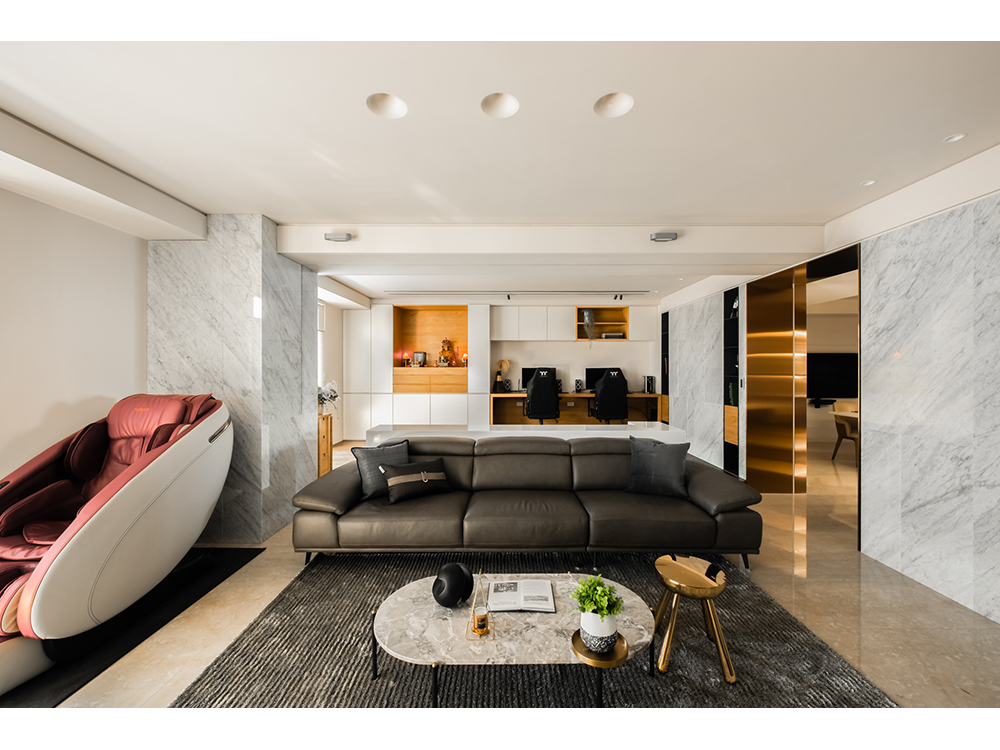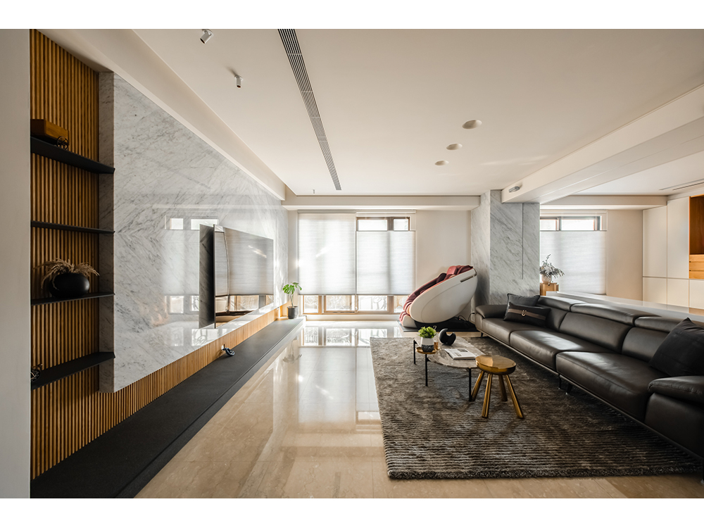 主要建材 | 卡拉拉白天然石材、鍍鈦板、海島型木地板