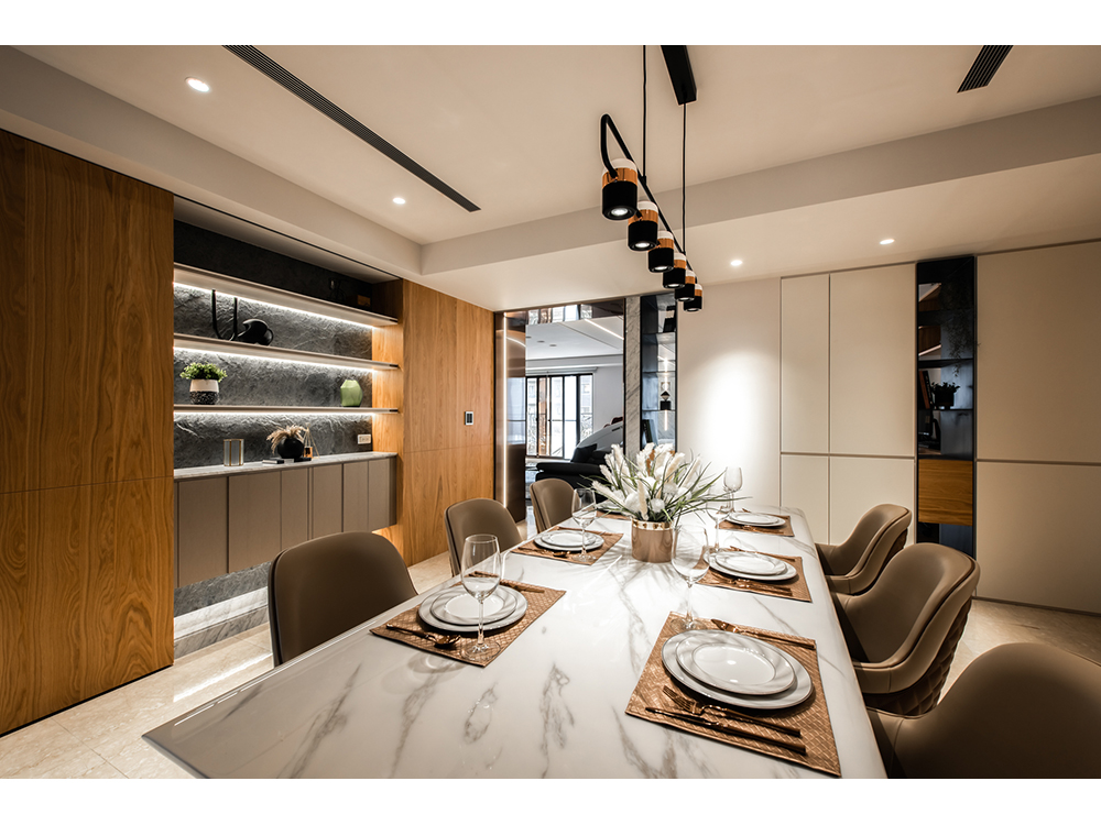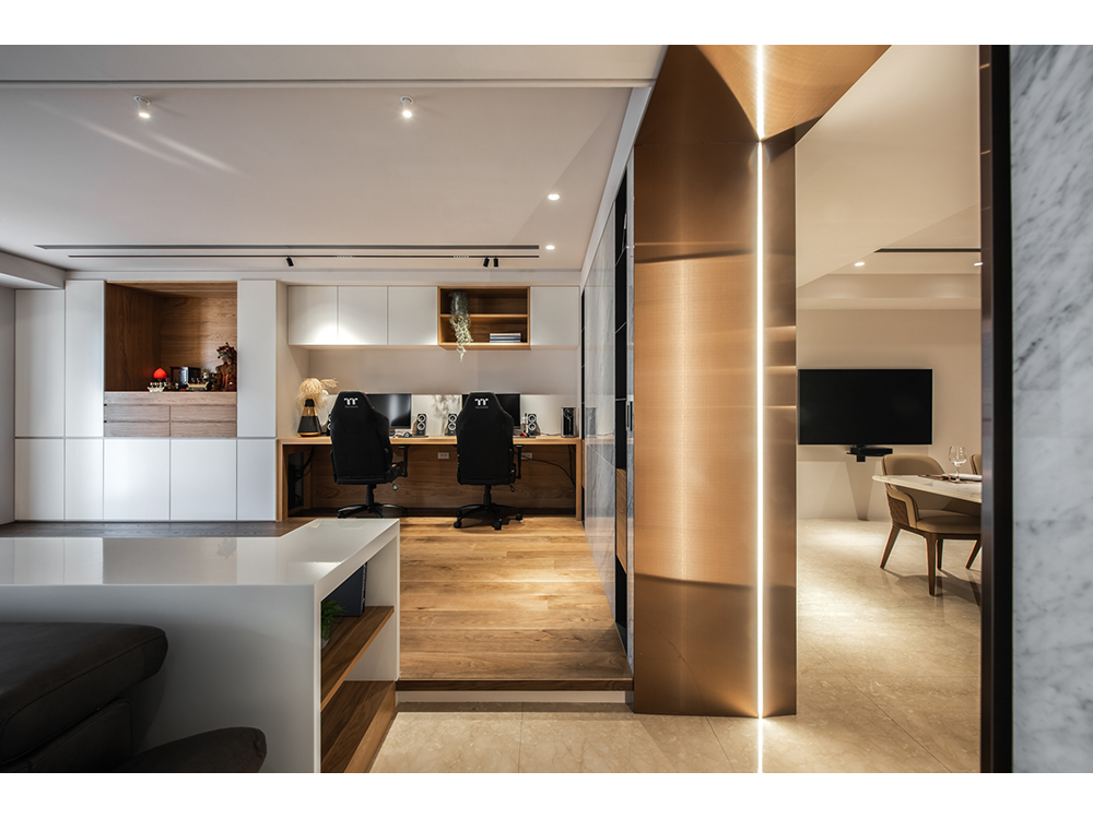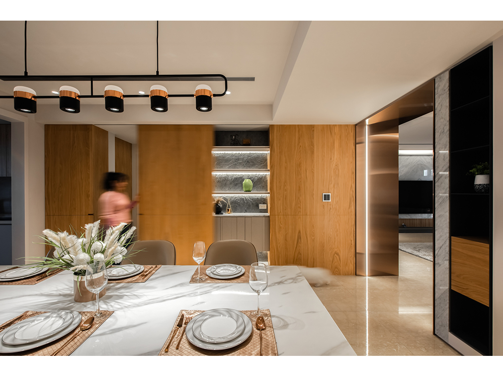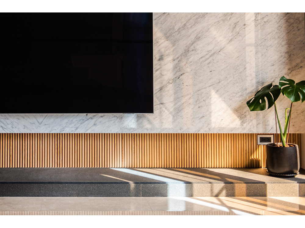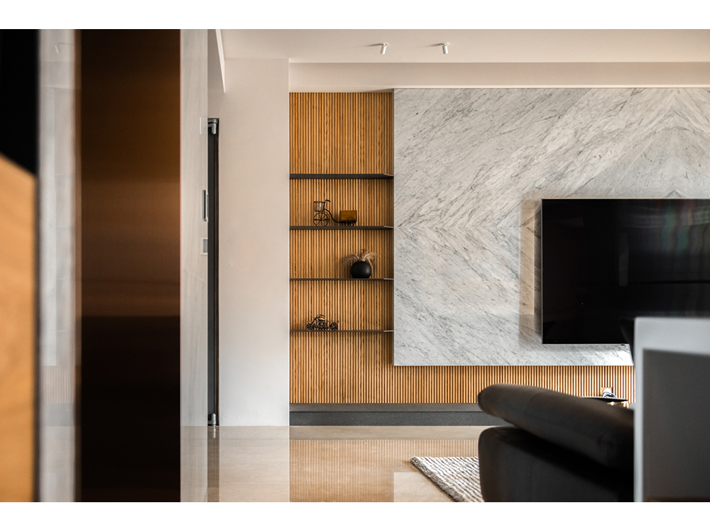 主要建材 | 卡拉拉白天然石材、鍍鈦板、海島型木地板