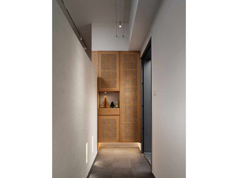 鞋櫃的門片採用藤編材質,除了自然透氣也增添了自然的美感。