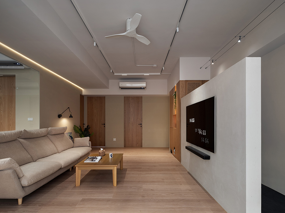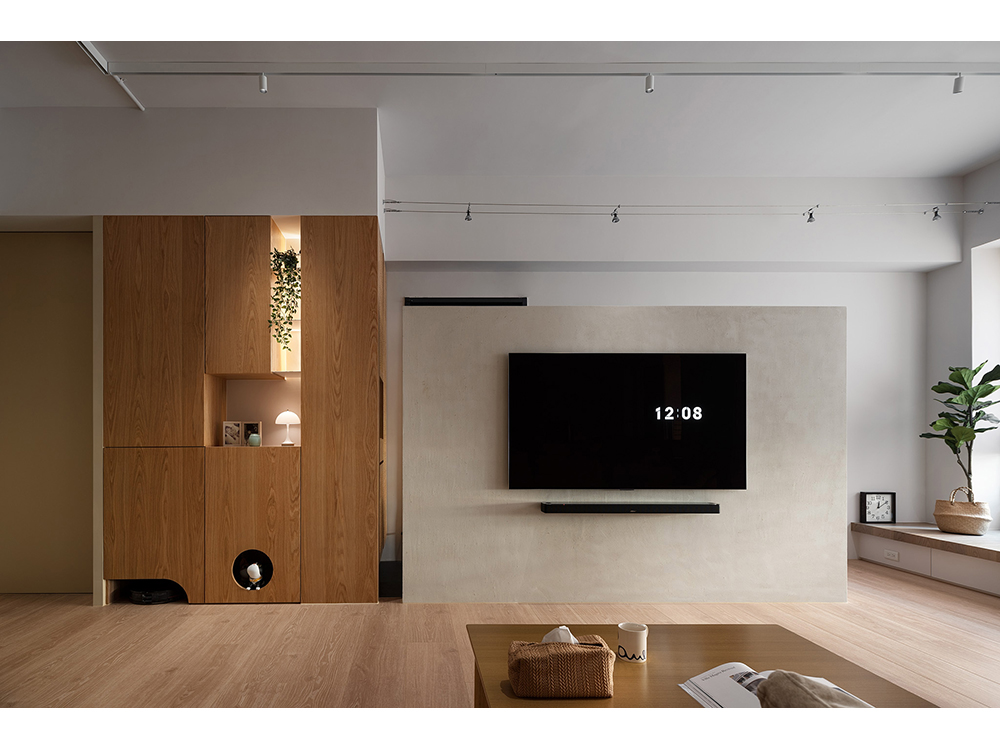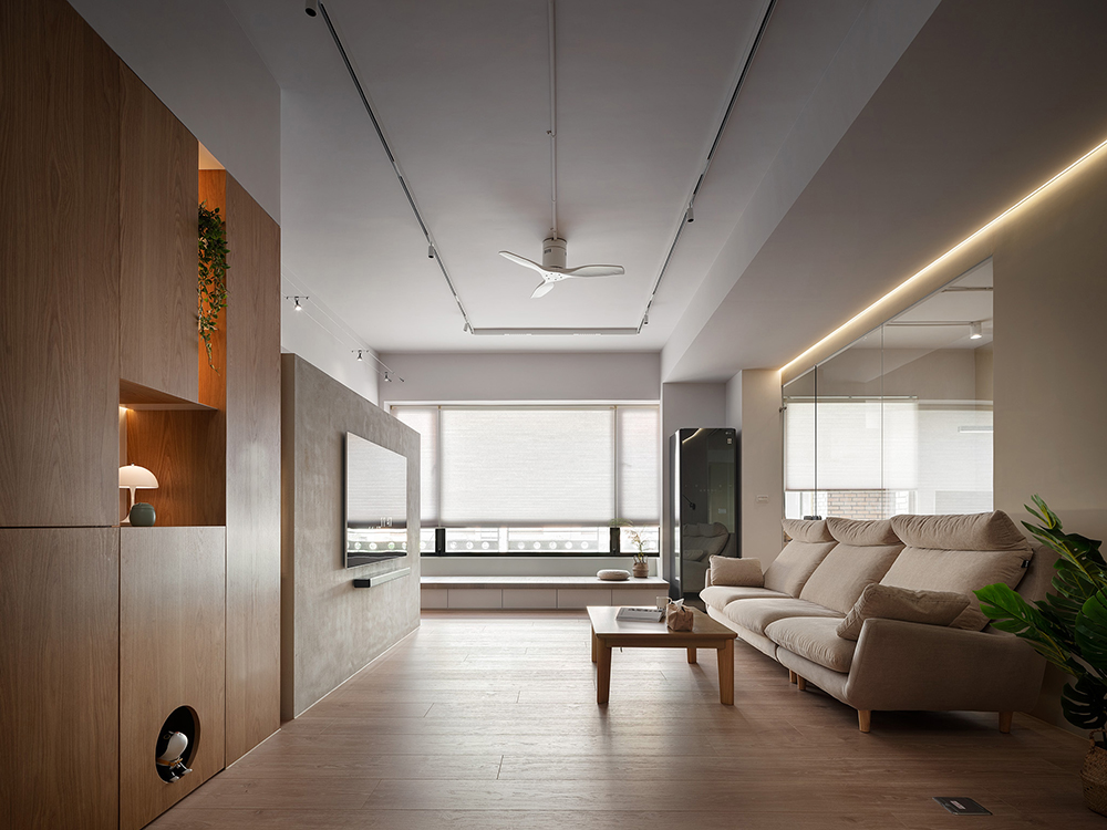 在色調方面,選擇了柔和的奶茶色與自然的橡木原色,營造溫暖且放鬆的氛圍。