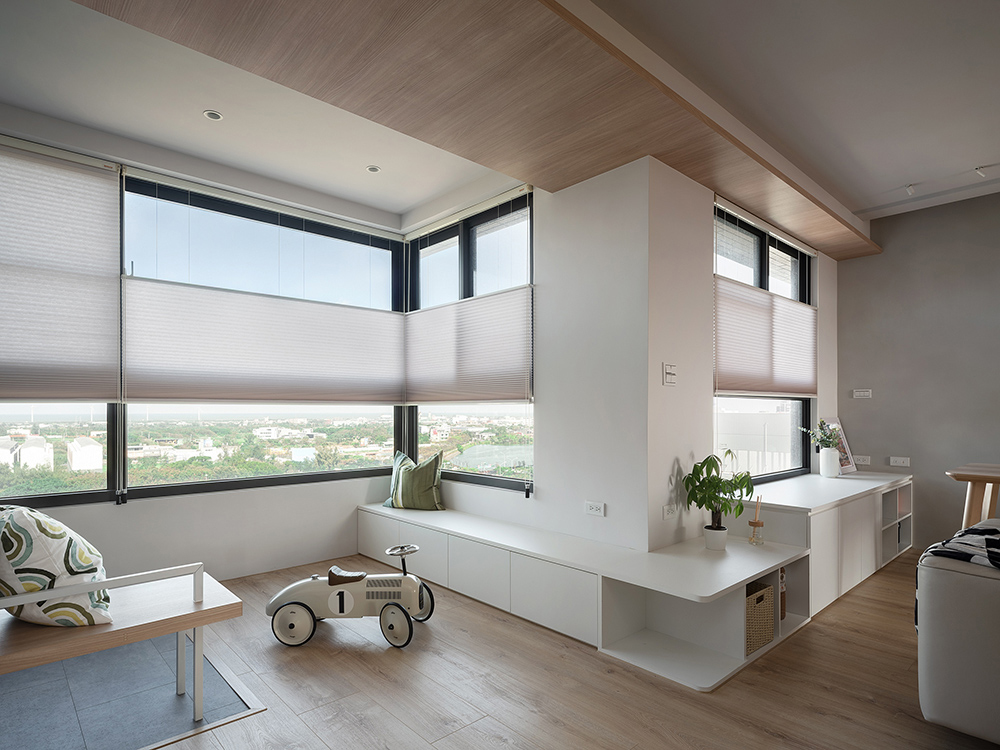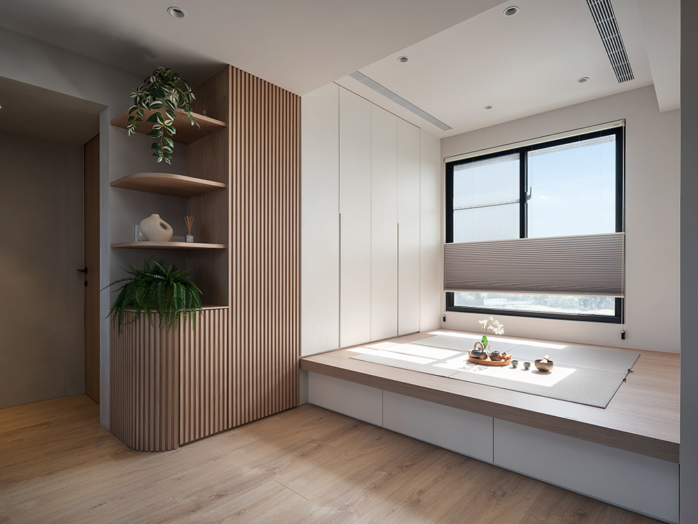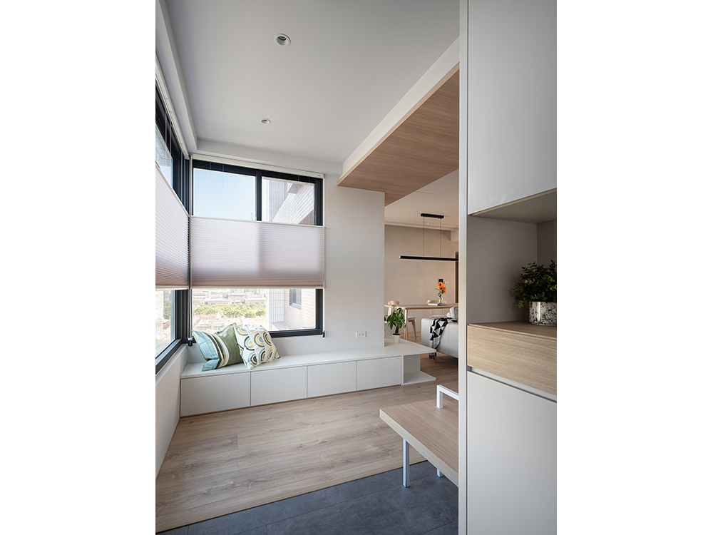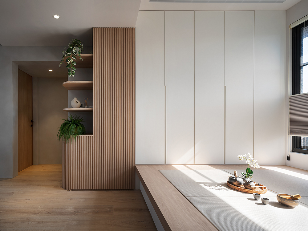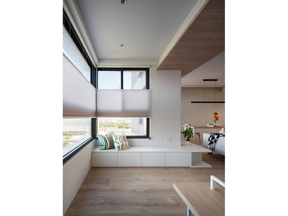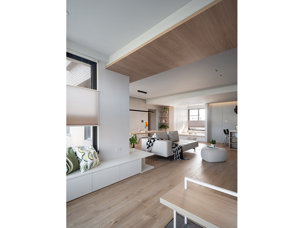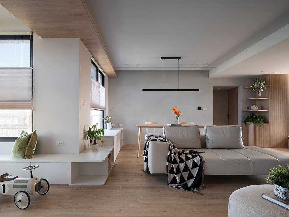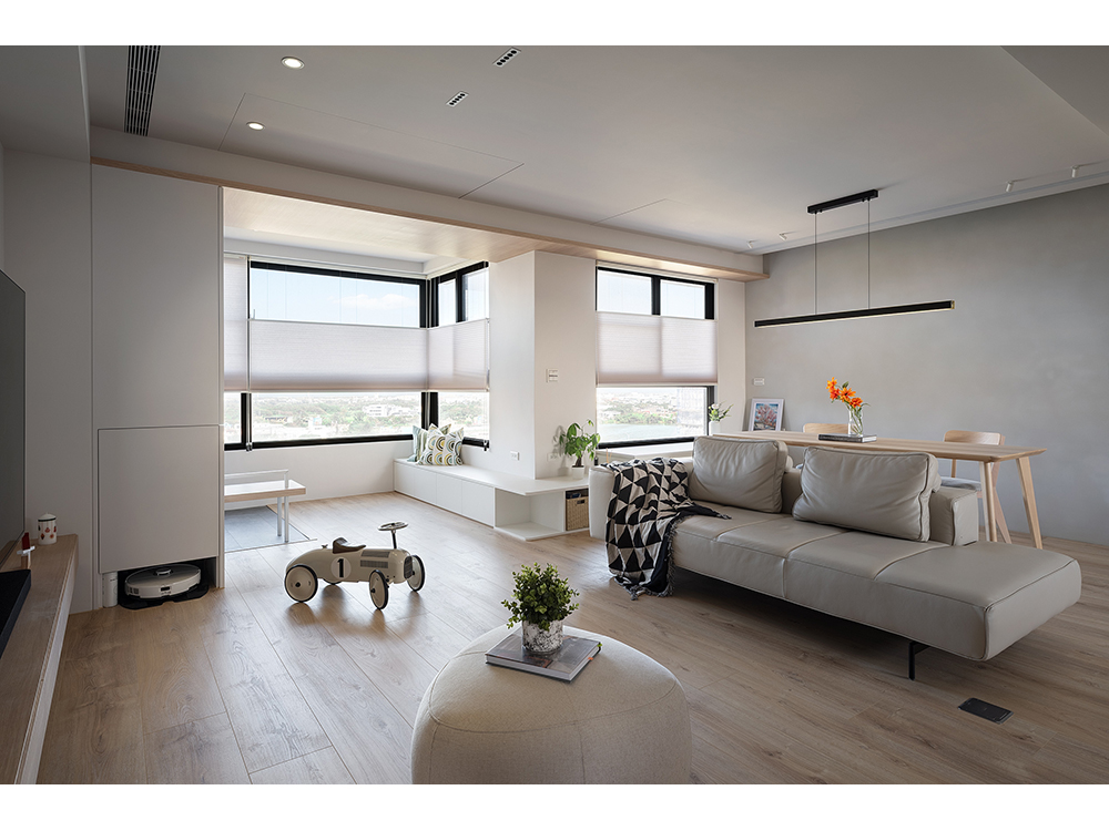 這是為一對年輕夫妻打造的日常居所。原有的四房格局,捨去一房換來開闊的公共空間,並將另一房改為開放式的多功能室,讓光線與空氣得以自在流動,平時也可做為瑜珈冥想空間,偶爾成為臨時客房。整體以簡約明亮為主調,溫潤木地板與紋理漆牆面,讓每個角落都自然、舒適。家,不需過多裝飾,只需留給生活更多餘裕,讓每一天都能靜好安放。